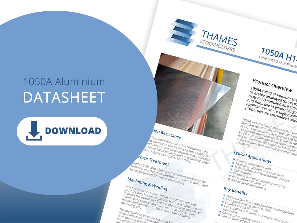 Grade 1050A also offers good anodising properties for technical and decorative/aesthetic use and is well suited to electrolytic and chemical brightening.
